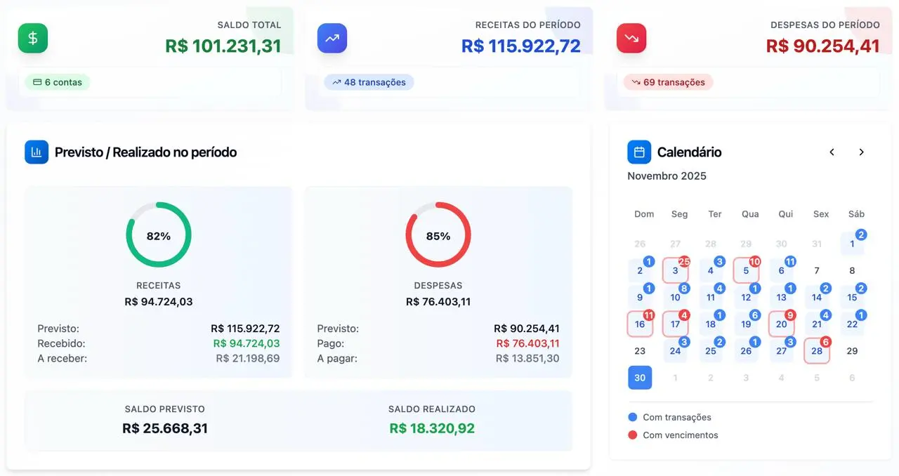 Ele rastreia cada centavo que saiu, evitando que você fique horas revirando extrato para descobrir onde gastou R$100,00 na semana passada. Transparência total para você não ter surpresas na conta.